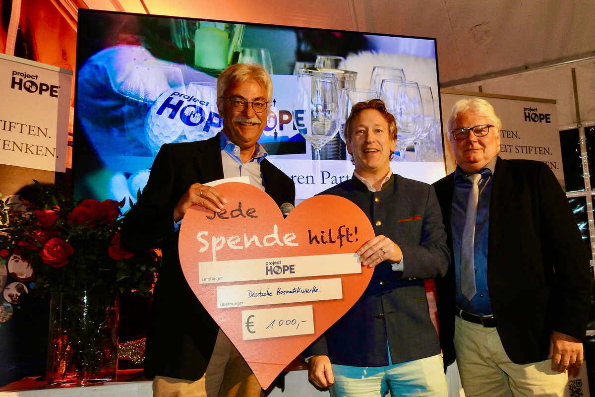 Die Spendenschecks von Ingolstadt und Wertheim Village in Höhe von jeweils 5.000 Euro wurden erneut im Rahmen der Veranstaltung von Liwei Gramminger überreicht und leisten ebenfalls einen weiteren wichtigen Beitrag zur Projektfinanzierung. Dr. Olaf Stiller von den Deutschen Kosmetikwerken überraschte uns mit einem Scheck über 1.000 Euro und der Absicht, das Engagement auszuweiten. Für eine Spende in gleicher Höhe danken wir unserem langjährigen Partner MedCare Visions.